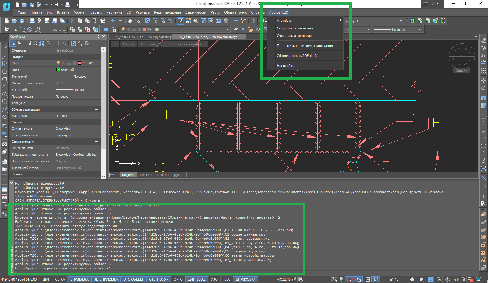 - открывать и редактировать DWG-файлы из системы Appius-PLM ТДО,